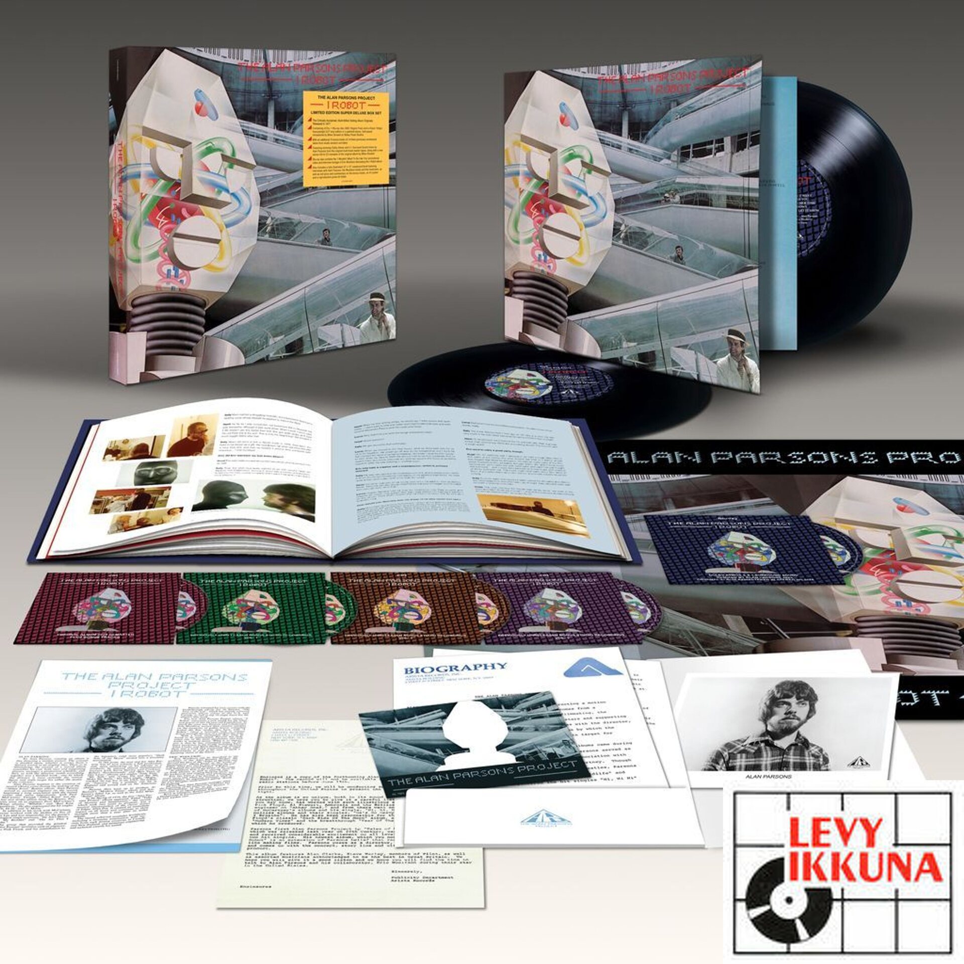 The Alan Parsons Project's second studio album, "I Robot", widely regarded as one of the best concept albums of all time, is now being re-released in various formats, including a Super Deluxe Edition Box Set. It contains 4CDs, a Blu-ray, an audiophile 2LP pressing, a hardback book and a replica press kit.