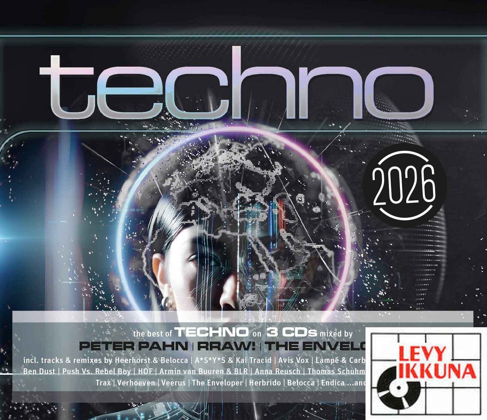 Erlebe den Sound der Stunde: TECHNO 2026! – Drei CDs vollgepackt mit aktuellem Techno Sound , kraftvoll gemixt von Szenegrößten RRAW!, The Enveloper und Peter Pahn.