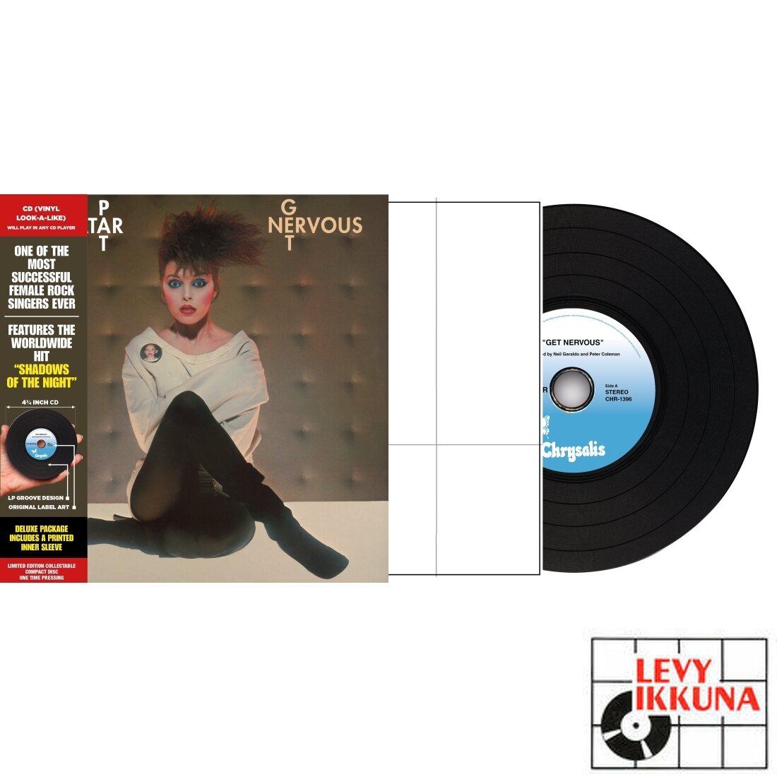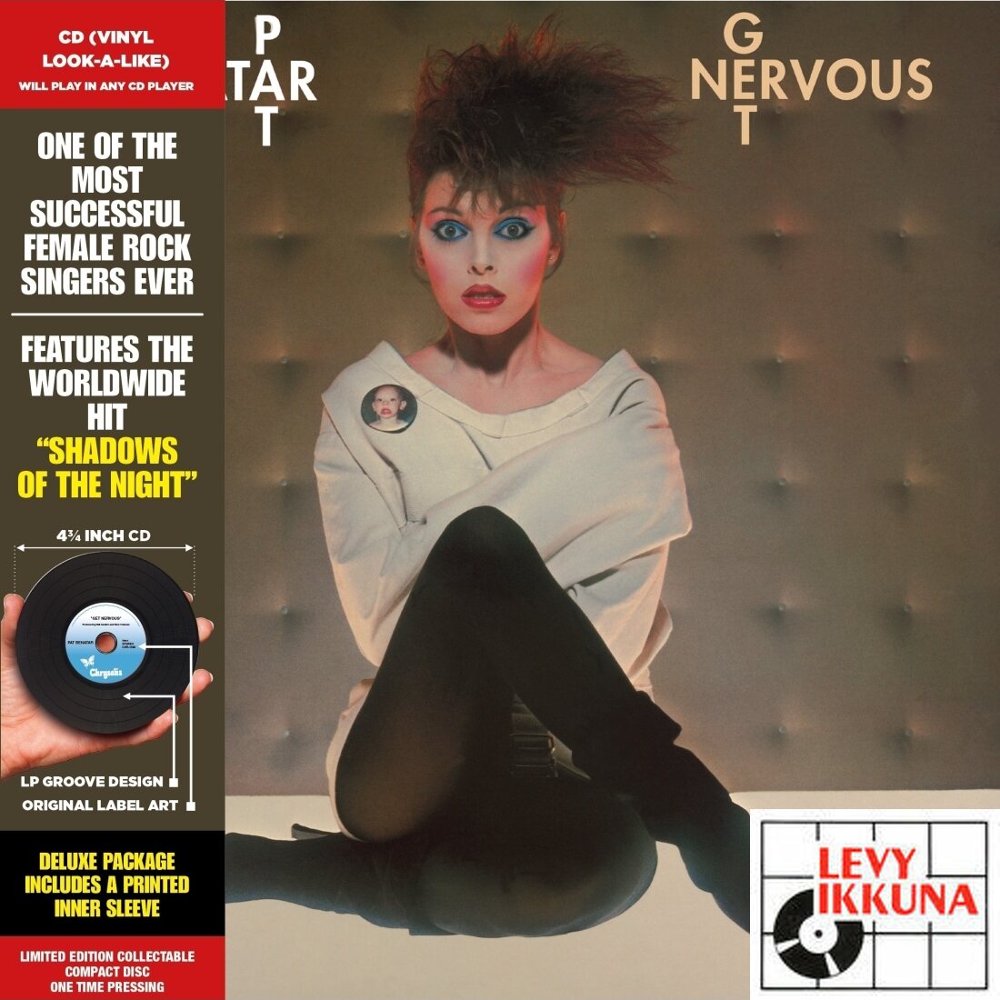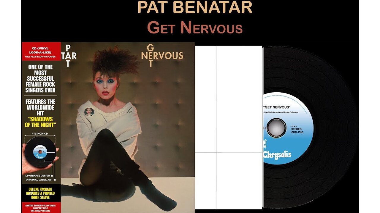 Pat Benatar's Get Nervous (1982) is a rock album that combines energy and emotion. It contains hits such as "Shadows of the Night" and "Anxiety (Get Nervous)", dealing with themes of anxiety and power. The album shows Benatar's evolution towards a more experimental sound. CD Vinyl Replica • Limited BLACK Polycarbonate CD
