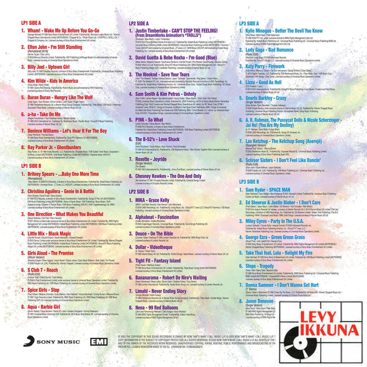 Led by massive party anthems from Justin Timberlake, and the #1 collaboration from David Guetta and Bebe Rexha, LP2 features modern Pop gems from The Weeknd, P!nk and the huge ‘Unholy’ from Sam Smith & Kim Petras – alongside classic party-Pop from The B-52s, Roxette and the 5-week #1 ‘The One And Only’ from Chesney Hawkes. The second side includes non-stop-pure-Pop from Deuce, Dollar, Bananarama, Limahl and closes with Nena’s #1 ’99 Red Balloons’.