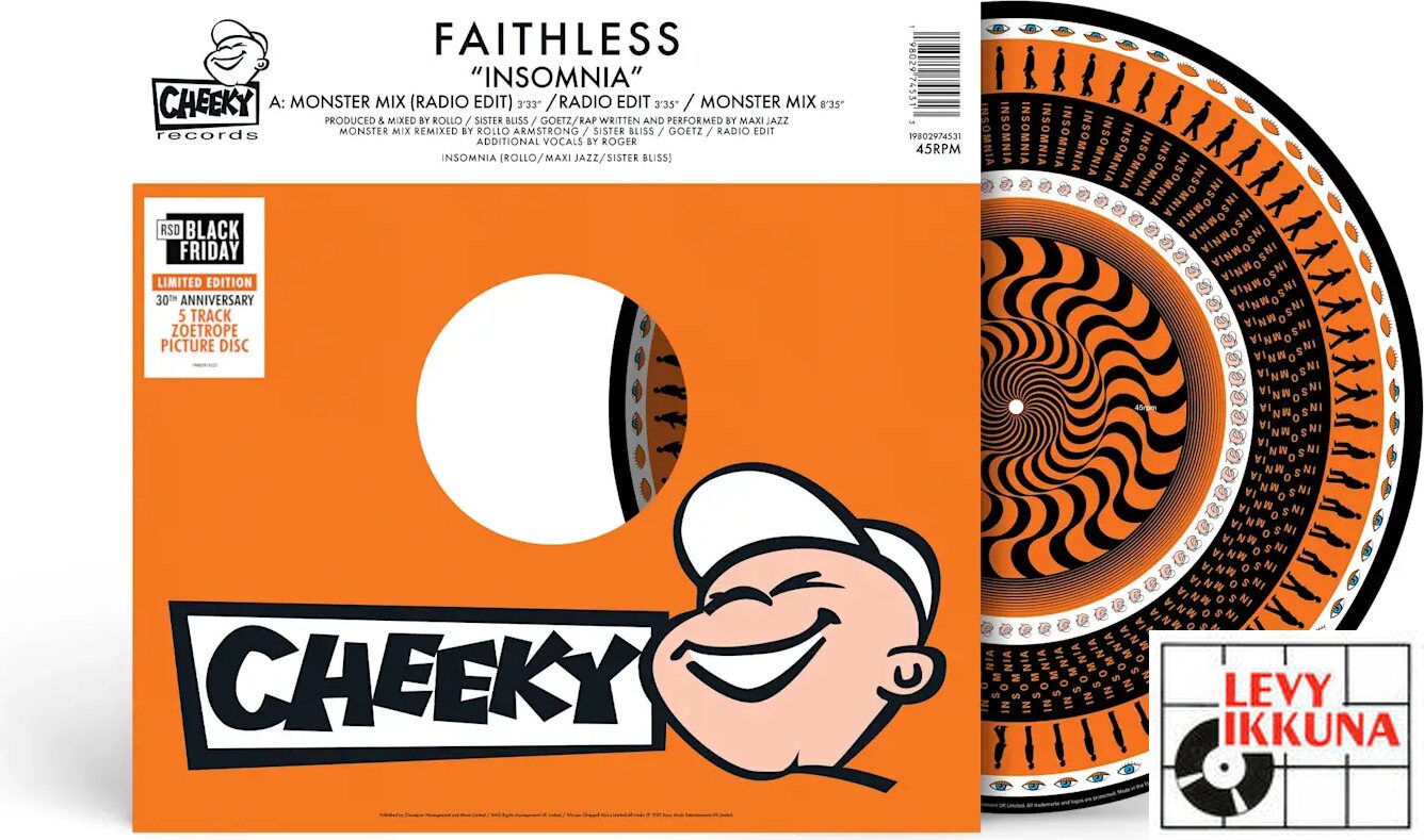 30th anniversary of this classic dance single. A x5 track remix package - Zoetrope Picture Disc To celebrate three decades of one of electronic music’s most iconic tracks, ‘Insomnia’ by Faithless will be released as a 12” Zoetrope Single exclusively for RSD Black Friday 2025.