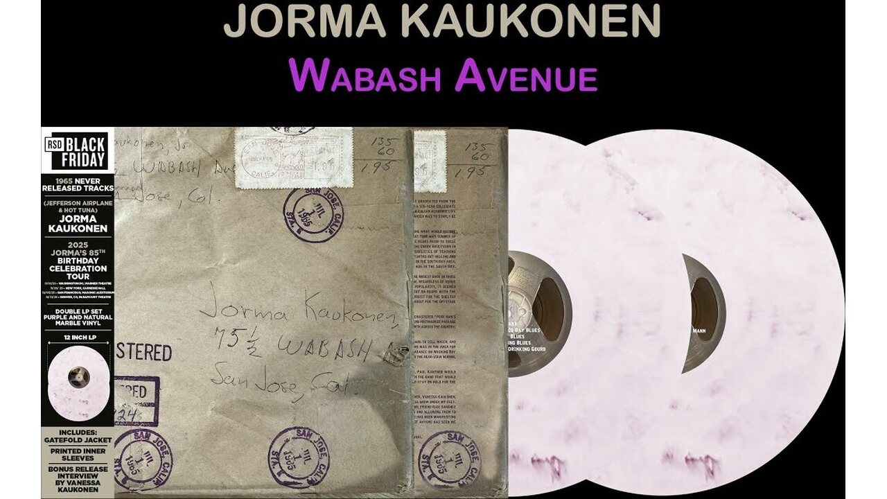 Wabash Avenue tracks is a brand new collection of unreleased tracks from 1965, recently found by Jorma's wife in a family storage bin. These tracks have been restored from the original reel to reel master tape, and are being released exclusively for RSD Black Friday 2025 to celebrate Jorma's 85th Birthday Celebration tour, in the US throughout November.