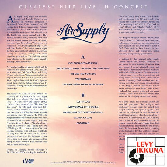 Air Supply – Greatest Hits - Live In Concert LP Coloured Vinyl