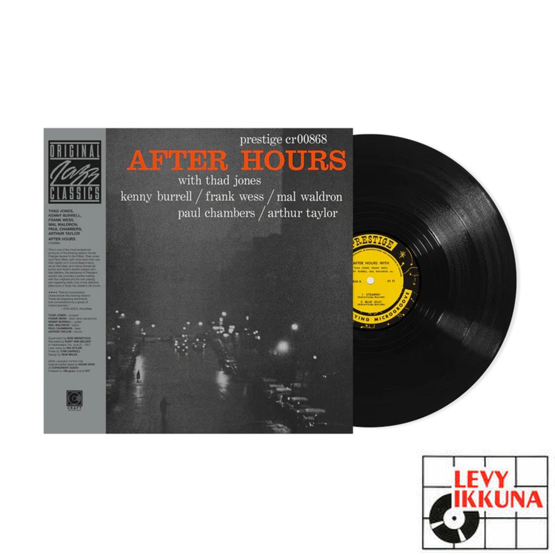 After Hours is a 1957 album from the Prestige All Stars – led by trumpeter Thad Jones. Also including Frank Wess (flute, tenor sax), Mal Waldron (piano), Kenny Burrell (guitar), Paul Chambers (bass), and Art Taylor (drums), the album features 4 cuts, all composed by Mal Waldron. This new edition of the album is released as part of the Original Jazz Classics Series on 180-gram vinyl pressed at RTI with all-analog mastering from the original tapes at Cohearent Audio and a Stoughton Tip-On Jacket.