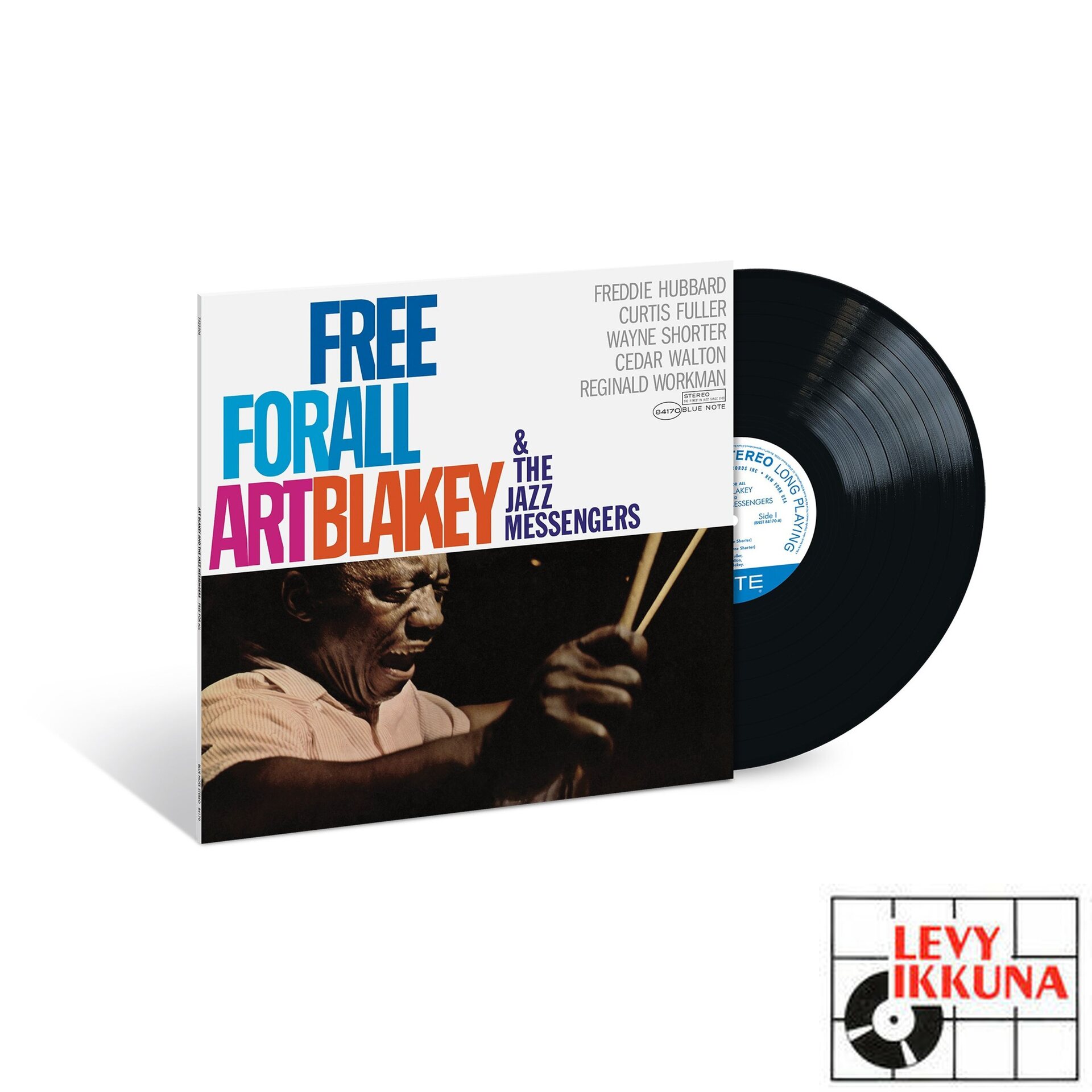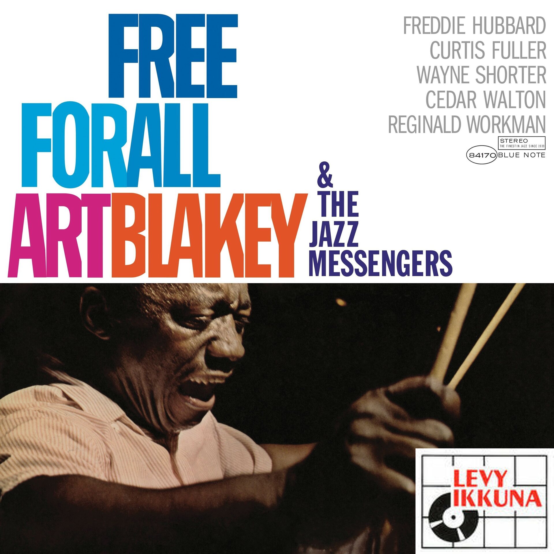 Art Blakey & The Jazz Messengers Free For All was perhaps the band’s most potent album featuring a powerful sextet line-up with the great drummer joined by tenor saxophonist Wayne Shorter, trumpeter Freddie Hubbard, trombonist Curtis Fuller, pianist Cedar Walton, and bassist Reggie Workman. Recorded in February 1964, it had been more than two years since the Messengers had recorded for Blue Note, and the music bristled with the charged energy of the civil rights movement including the blistering title track and roiling “Hammer Head,” both composed by Shorter, as well as Hubbard’s kinetic piece “The Core” dedicated to the Congress Of Racial Equality. The album closes in a joyful mood with a timeless rendition of Clare Fischer’s bossa nova flavored jazz standard “Pensativa.”