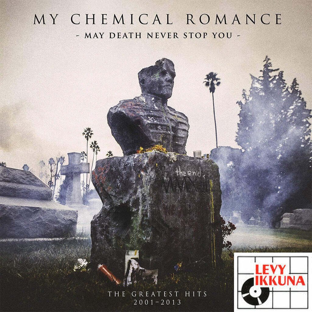 My Chemical Romance originally released May Death Never Stop You in 2014. It is a 2-LP, 19 track, Greatest Hits compilation and includes "Welcome To The Black Parade", "Helena", "I'm Not OK (I Promise)" and "Teenagers". It spans MCR's career from 2001 to 2013 including tracks from each of the band's four studio albums, plus "Fake Your Death" (a track only found on this compilation), and three of the legendary "Attic" demos.