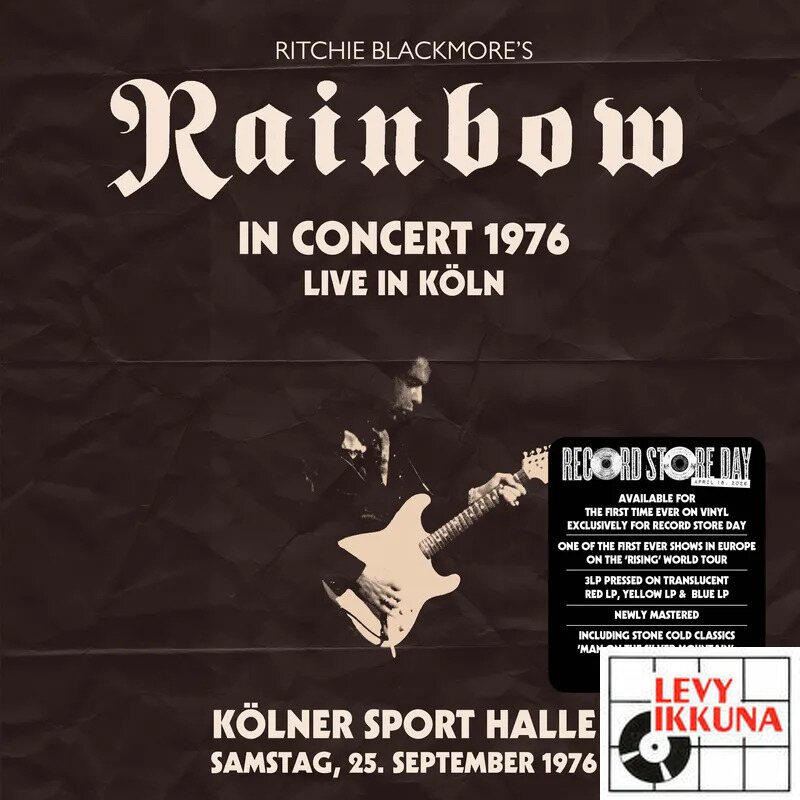 50th anniversary this show recorded on the bands rainbow rising tour in 1976 in cologne germany, features stone cold classics such as stargazer and man on the silver mountain. this live album has only been available on cd pressings made 20 years ago, both as a single concert / as part of the japan only 6-cd box set deutschland tournee 1976. now nearly 50 years on from the original concert, the recording makes it’s debut appearance on a vinyl format with the audio newly mastered by andy pearce & matt wortham