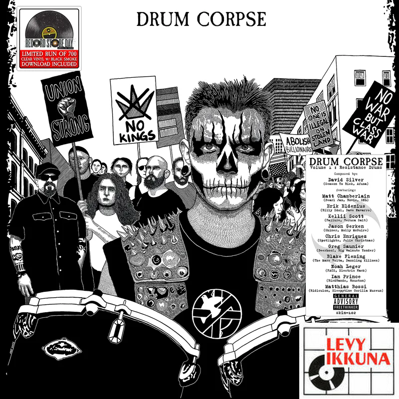 Drum Corpse is a band of drummers playing along with protest chants to support democracy, including Matt Chamberlain (David Bowie, SNL, Pearl Jam), Erik Eldenius (Billy Idol, Dave Navarro), Kellii Scott (Failure, Veruca Salt), Jason Gerken (Shiner, Molly McGuire), Chris Enriquez (Spotlights, Julie Christmas), Greg Saunier (Deerhoof, Big Walnuts Yonder), Blake Fleming (The Mars Volta, Dazzling Killmen), Kliph Scurlock (Flaming Lips, Gruff Rhys), Noah Leger (FACS, Electric Hawk), Ian Prince (BirdHands, Houston), Matthias Bossi (Sleepytime Gorilla Museum, Skeleton Key) and creator David Silver (Season to Risk, Afuma).